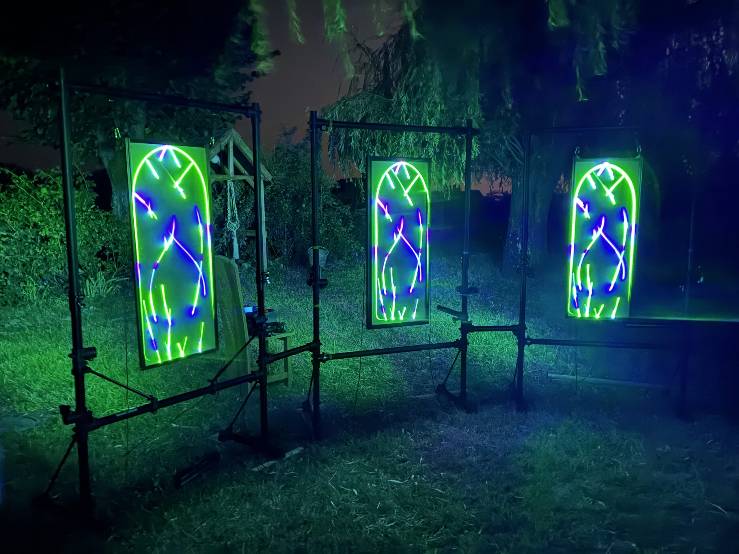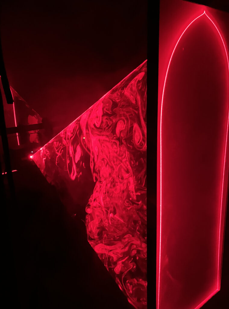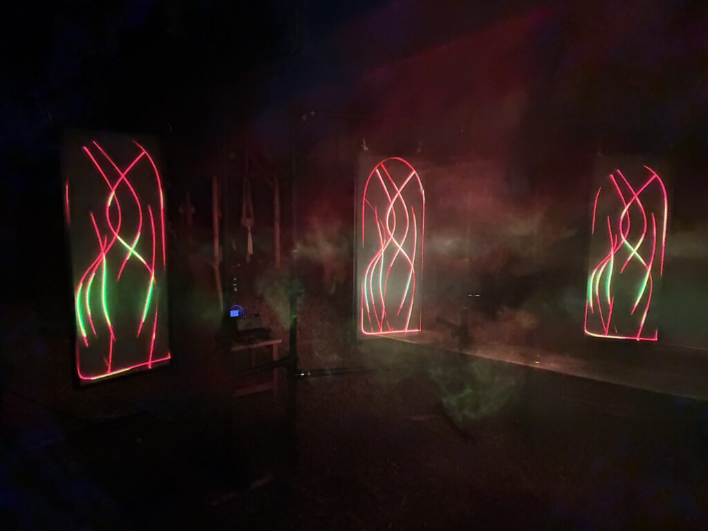 Initiated through experiments conducted during an artistic residency focused on glass as a material, Arcana Trinitas explores the transparency of glass and laser projection.