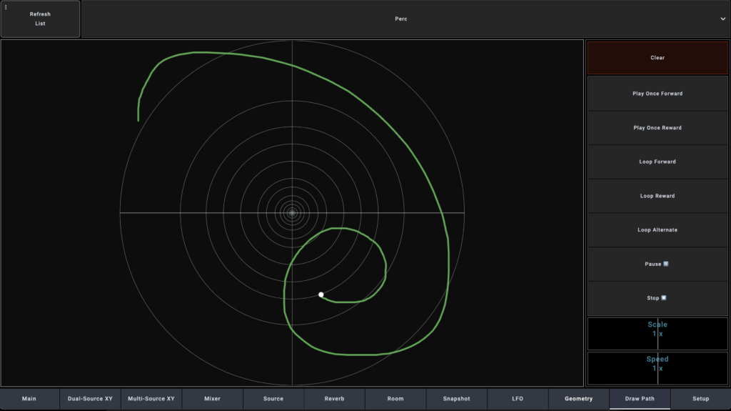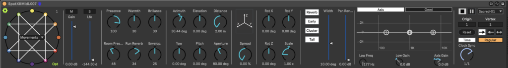 At the same time, I developed an initial Max for Live patch called Spat 4 Live XII, designed to control the movement of any source based on geometric shapes.