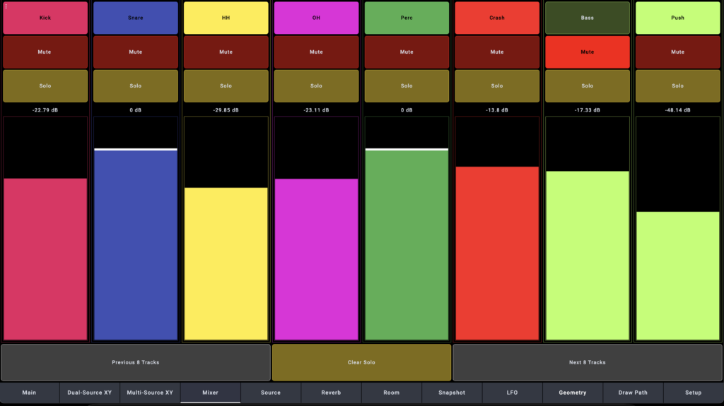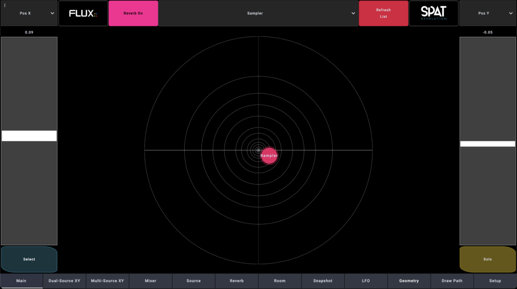 As Lemur was being discontinued, they invited me to further develop and refine the interface for an official Spat Revolution release. In collaboration with Nicolas Erard from the Flux::Audio team, we created a fully implemented Spat Revolution control interface — covering Sources, Snapshots, Reverb, Room parameters.